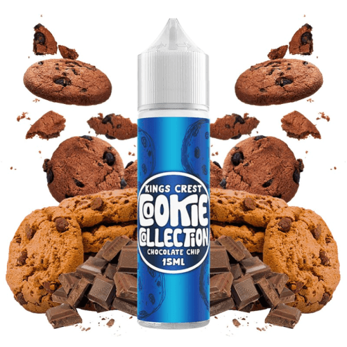 El aroma Chocolate Chip de la gama Cookie Collection de Kings Crest en formato Longfill, sabe a deliciosa galleta casera recién horneada, cubierta de apetecibles pepitas de chocolate con leche.