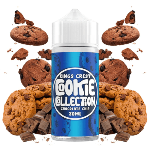 El aroma Chocolate Chip de la gama Cookie Collection de Kings Crest en formato Longfill, sabe a deliciosa galleta casera recién horneada, cubierta de apetecibles pepitas de chocolate con leche.