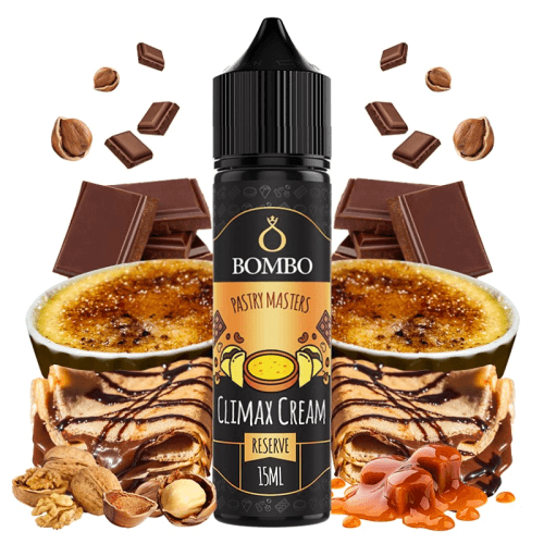 El aroma Climax Cream de Pastry Masters by Bombo en formato Longfill, sabe a crepe de crema catalana con pepitas de chocolate, frutos secos y notas acarameladas. Una receta con doble proceso de maceración, que está destinada a ser el “buque insignia” de los postres.