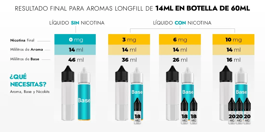 - Botella de 60ml con 14ml de aroma