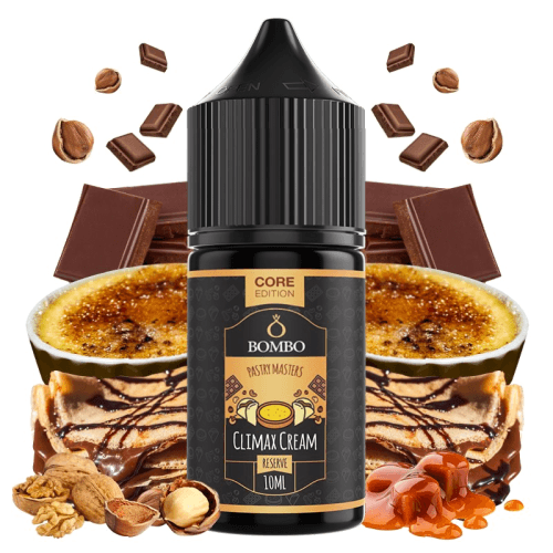 El aroma MiniLongfill Climax Cream de Pastry Masters by Bombo Core Edition sabe a crepe de crema catalana con pepitas de chocolate, frutos secos y notas acarameladas. Una receta con doble proceso de maceración, que está destinada a ser el “buque insignia” de los postres.