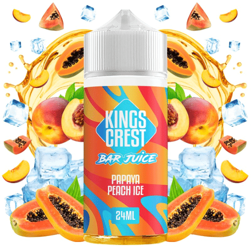 El Aroma Papaya Peach Ice 24ml Longfill – Kings Crest Bar Juice te hará disfrutar de una sabrosa mezcla de sabores dulces, ya que mezcla la papaya y el melocotón con un toque de frescor.