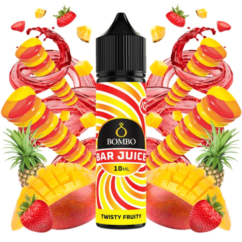 ¡Prueba ahora el Aroma Twisty Fruity 10ml Longfill Bombo Bar Juice y déjate llevar por un remolino de sabor tropical en cada calada!