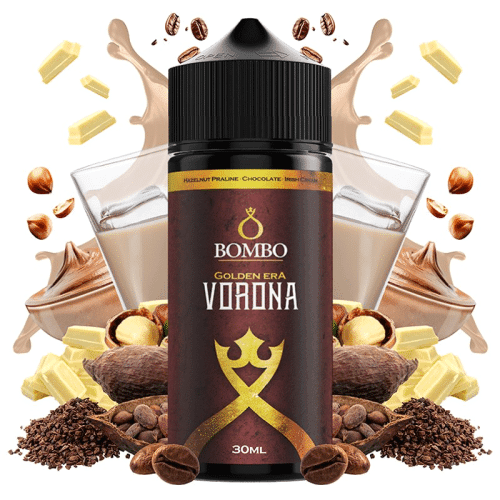 El aroma Vorona de Golden Era by Bomboen formato Longfill, sabe a praliné de avellanas, cacao y chocolate blanco con un toque de café que, junto a una crema de Baileys, redondea esta exquisita receta.
