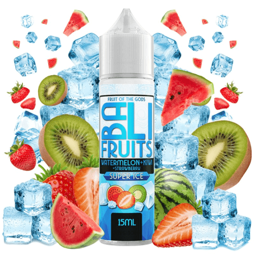 El aroma Watermelon + Kiwi + Strawberry Super Ice de Bali Fruits by Kings Crest en formato Longfill, te sorprenderá por su fusión de sandía, fresas y kiwi, sobre un fondo extra fresco. ¡Una mezcla irresistible para el paladar!