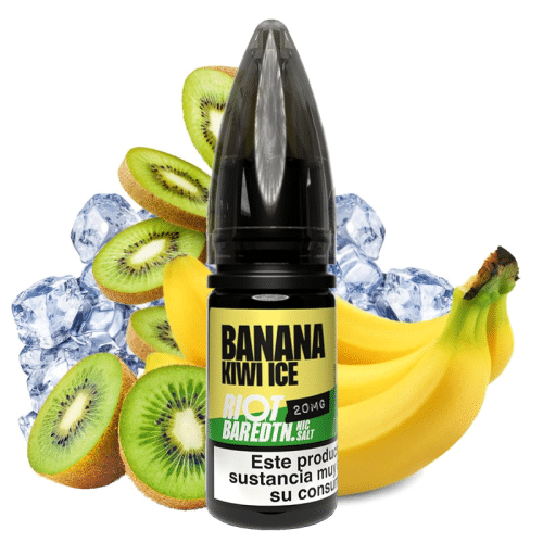 El líquido Banana Kiwi Ice de Riot Squad Bar EDTN combina el sabor dulce de la banana con el sabor ácido de los kiwis y el toque Ice. ¡Se complementan a la perfección!