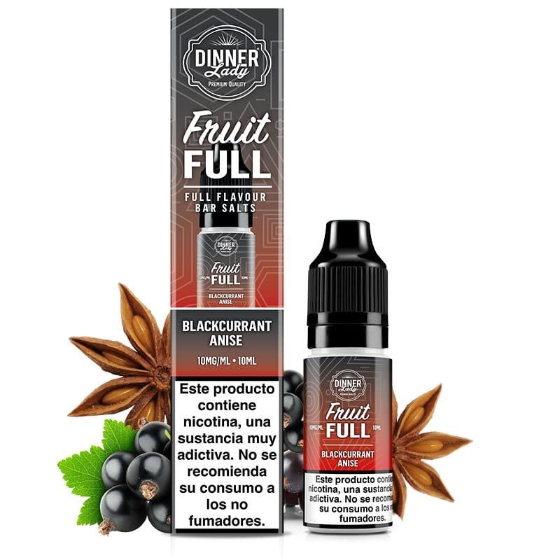 Las sales de nicotina Blackcurrant Anise de Dinner Lady Salts de la gama Fruitfull Bar, unen el jugoso sabor de la grosella negra, con ligeros toques a anís.