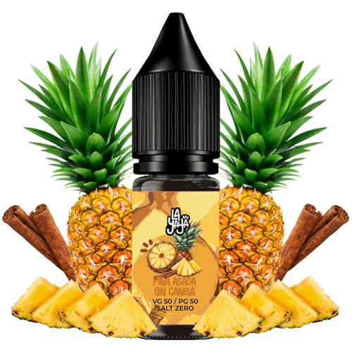 El líquido Piña Asada con Canela de La Yaya reproduce el delicioso sabor de una piña asada, con un toque dulce de canela.