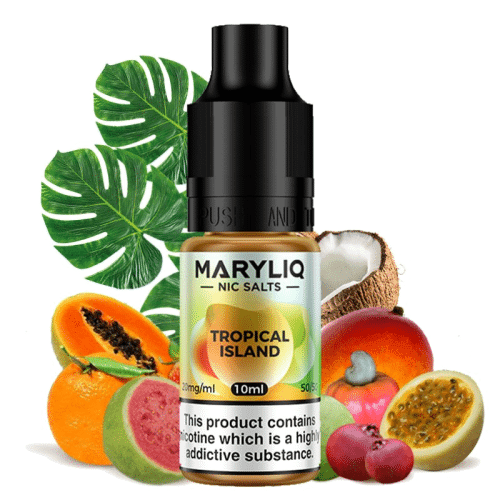 El líquido Tropical Island de Maryliq Nic Salts by Lost Mary ofrece una sabrosa mezcla exótica, gracias a diferentes frutas tropicales, con ligeros toques de coco. Es el perfecto para los amantes de los sabores afrutados.